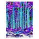 A vibrant abstract of blue trees, purple leaves and undergrowth.