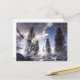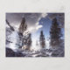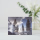 Trees reflecting in rain puddle water postcard