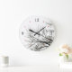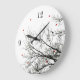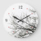 Custom wall clock with minimalist nature theme featuring black and white bare trees silhouette and flying bird. Numerals and red dots can be customized.