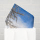 Snow covered forest trees with blue sky clouds white winter woodland scenery craft decoupage tissue paper. Image copyright Marg Seregelyi Photography.