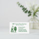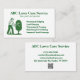 A tidy and professional lawn care business card featuring a landscaper trimming a shrub. Perfect for businesses that specialize in shaping, pruning, and detailed yard aesthetics. Includes a clear list of services to attract attention and build trust.