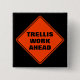 A classic orange diamond caution road sign warns of trellis work ahead in a thick black sans serif font. A pun play on words of a classic sign, road work ahead, garden humor, fence architecture, for pergola or plants.