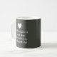Embrace style and personal touch with our Trendy Dark Forest Gray / Forest Green Customizable Mug. On one side, your name takes center stage in an elegant script font for a unique and sophisticated look. On the other side, the heartwarming message 'Wishing you a great day filled with joy and positivity!' greets you, adorned with a heart symbol, adding a touch of warmth to your day. This thoughtful message is also customizable, allowing you to keep, modify, or remove it as desired.