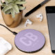 Stylish Wireless Charger with customizable two-letter monogram and personalizable name in a modern and minimalist light purple font.