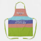 A stylish trending personalized TASTE AND SEE Christian apron, with trending spring and summer colors of lime green, coral haze pink, blue iris,