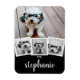 Trendy 4 Photo Collage Script Name White Black Magnet