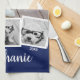 Trendy 4 Photo Collage Script Name White Blue Kitchen Towel