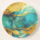 Turquoise and azure blues, as well as vivid sparkly and striking dark golds, are all used in this dazzling original abstract design.