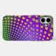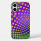 This case has a design with trendy decorative patterns. The main colors are purple, green and yellow. This product can be customized by adding text.