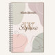 Easily personalized to include your name and initial on this trendy sketchbook with shades of pastel green, purple, pink and grey.