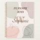 Easily personalized to include your name and initial on this trendy planner with shades of pastel green, purple, pink and grey.