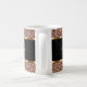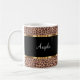 Monogram coffee mugs in a cool and classy design with printed leopard pattern background art and gold tone design elements that add a touch of glitz and glam. Personalize with any name or monogram initials or ladies or girls in a modern design that makes this a fun cup for coffee, tea, or your favorite beverage.