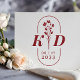 This stamp features a chic and modern design with a decorative arch delicately framing the initials of the newlyweds. Additionally, it is adorned with charming wildflowers, adding a touch of freshness and naturalness to the design. The combination of geometric and organic elements creates a visually appealing contrast that is sure to catch the attention of your guests.