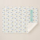 This blanket features an arrow pattern in an aqua mint, navy, gold, and gray.