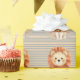 Cute watercolor baby lion with tan beige and dusty blue stripes and wildflowers. Matching invitations and baby shower party supplies are available in this collection suite.