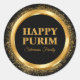Trendy Black and Gold Jewish Holiday Happy Purim Classic Round Sticker