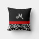 Trendy Black and White Zebra Stripe with Red Border Monogram Pillow. Perfect for your home, car or travel. Accent your home with a monogram zebra stripe pillow in black, white and pink. Customize this monogram with your own initials or name. Great for a gift.