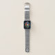 Black and white houndstooth pattern personalized 1 2 3 Apple watch band. Cool smartwatch accessories with custom name or initial letters. Customizable background color. Trendy Birthday or Christmas holiday gift ideas for friends and family. Beautiful fashion print for men and women. Unique presents for mom, girlfriend, sister, daughter, best friend, co worker, cousin, mother, grandma, wife, husband, dad, brother, son etc. Available for 38 & 42 mm wide case sizes. Elegant third party watch straps for him or her.