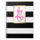 This elegant notebook features trendy black and white stripes with a faux gold look frame in the center. Modern typography in bright pink says "big ideas", which is certainly something you can use this journal for! Personalize with your name.