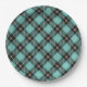 Trendy Black Aqua Plaid Pattern Paper Plates
