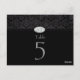 This elegant wedding table number post card has a black damask pattern border at the top with a soft black/grey border with an oval shaped diamond and silver jewel at the middle top. You can easily customize the table number at the bottom. This design is repeated on the front, and on the back. PLEASE NOTE: The diamond jewel is just a design, there are no actual jewels or diamonds on this card.