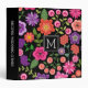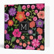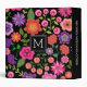 Trendy Black Floral Pattern with Custom Monogram 3 Ring Binder