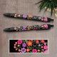 Trendy Black Floral Pattern with Custom Monogram Pen