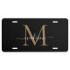 Trendy Black Gold Monogram Girly Feminine Script License Plate