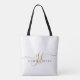 Trendy Black Gold Monogram Initial Script Name Tote Bag