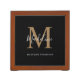 Trendy Black Gold Script Typography Monogram Desk Organizer
