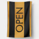 This open sign flag is a must-have for any small business owner looking to drive more foot traffic and sales. Its striking black Gold design ensures it stands out, drawing the eye of potential customers and inviting them to come on in. Constructed from tough, weatherproof materials, it can be displayed proudly outside your storefront, rain or shine, to let the world know you're open for business.Trendy Modern black Gold Open Sign Flag