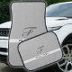 Cool, stylish and trendy Black and Light Gray Monogram and Name car floor mats with large script initial. White horizontal stripe. Version 2.