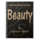 Elegant appointment book for Beauty Salon, makeup artist features champagne glitter Beauty script and your name and single initial monogram, on a modern black marble background with few lines of custom text . For further customization, please click the "customize further" link and use our design tool to modify this template.