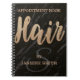 Elegant appointment book for Hair Salon / Hair Stylist /Hairdresser features champagne glitter Lashes script and your name and single initial monogram, on a modern black marble background with few lines of custom text . For further customization, please click the "customize further" link and use our design tool to modify this template.