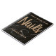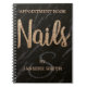 Elegant appointment book for Nail Technician Salon features champagne glitter Nails script and your name and single initial monogram, on a modern black marble background with few lines of custom text . For further customization, please click the "customize further" link and use our design tool to modify this template.