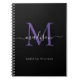 Trendy Black Purple Violet Monogram Script Name Notebook