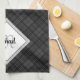 Trendy Black white tartan Personalize Monogram Kitchen Towel