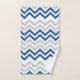 A modern and trendy chevron bath towel set with blue and gray zigzag lines on white.