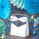 Send your guests home with a stylish thank you using these trendy blue denim patchwork favor boxes. The unique design features a woven-look denim flap atop a white box with a confetti pattern. The back of the box holds a customizable thank you message, like "Thanks for bringing good vibes and making my day extra special." It's the perfect finishing touch to a casual jean-themed party, providing a coordinated and heartfelt way to share a small treat or party favor.