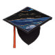 Trendy Blue Gold Agate Script Name Graduation Cap Topper