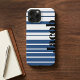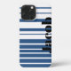 Trendy Blue Striped Custom Name iPhone Case, Aesthetic Pastel Blue Stripes Phone Cover, Modern Personalised Tech Gift, Gen-Z Style Accessory