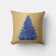 Trendy Blue Watercolor Glitter Tree Christmas Throw Pillow