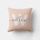 Trendy Blush Pink Script Typography Monogram Throw Pillow