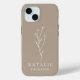 Our Trendy Boho Chic Minimalist Mushroom Brown Personalized iPhone Case, a perfect blend of elegance and contemporary style for your phone. This case features a modern minimalist design with a neutral mushroom brown background, complemented by trendy typography and a delicate flower drawing. The stylish monogram adds a personal touch, making it a sophisticated and classy accessory for any woman.