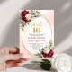 Trendy Boho Deep Red Gold Floral Sweet Sixteen Invitation