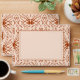 This trendy boho design features a unique pattern inspired by Native American prints. The stylish cream and rust orange colors are customizable.