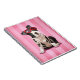 Trendy boston terrier puppy with heart shaped sunglasses, painted by artist Maryline Cazenave.