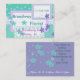 This whimsical business card is done in a patchwork of designs, with flowers, polka dots, and stripes would be great for a day spa, florist, bakery, gift shops, childrens store, and more. Trendy colors of teal and lavender together gives it a fun noticeable quality that customers won't forget. Customize with your information to personalize for yourself or your store.