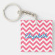 Hip and modern Trendy Chevron Acrylic Keychain. This cool keychain features a chevron zig zag pattern in pink and white. Add text to this design to give it a personal touch.