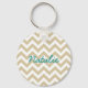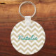 Hip and modern Trendy Chevron Keychain. This cool keychain features a chevron zig zag pattern in beige and white. Add text to this design to give it a personal touch.